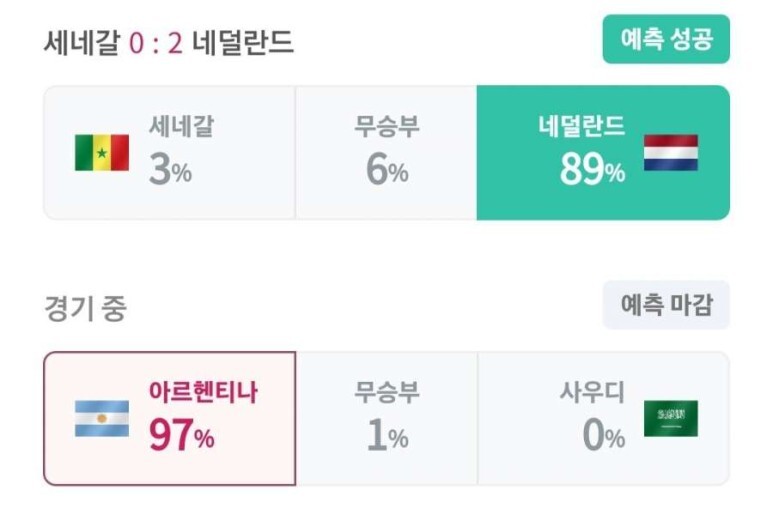 무려 97%의 승리예상표를 받았던 아르헨티나가 사우디에 역전패했습니다