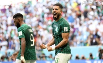 아르헨티나와 사우디아라비아와의 경기에서 살리흐 알 세흐리가 만회 골을 넣고 있다.