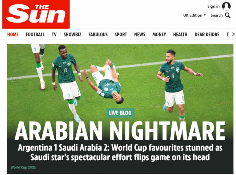 사우디가 2022 카타르 월드컵 첫이변의 주인공이 되었습니다